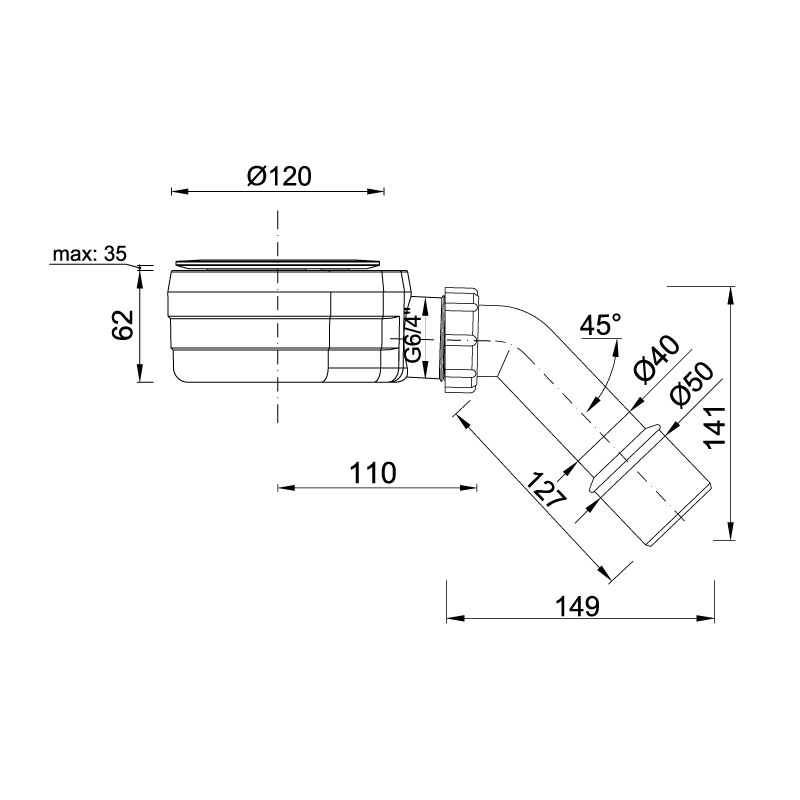 Sifon za tuš kadu STYRON plitki 60 mm bez poklopca fi 90
