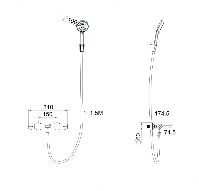 Termostatska miješalica za kadu COPEN CoolTouch s tuš setom mat crna